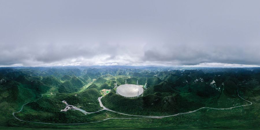 Photo taken on Aug. 27, 2019 shows China's Five-hundred-meter Aperture Spherical radio Telescope (FAST) in southwest China's Guizhou Province. (Xinhua/Ou Dongqu)