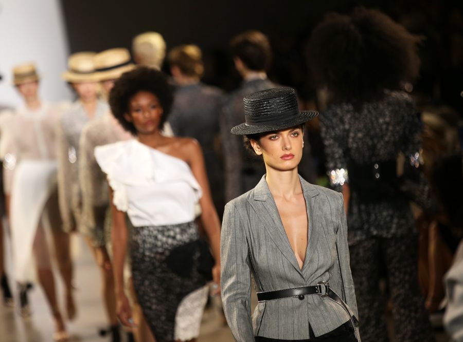 Models present creations from the Taoray Wang Spring/Summer 2020 collection during the New York Fashion Week in New York, the United States, Sept. 7, 2019. (Xinhua/Qin Lang)