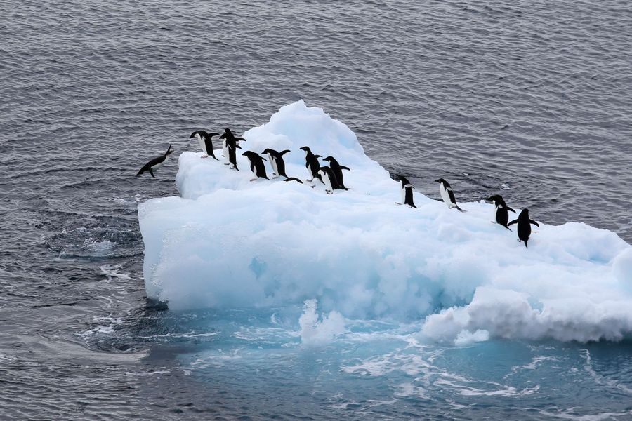 Photo taken on Feb. 15, 2019 shows penguins on an iceberg in Antarctica. (Xinhua/Liu Shiping)