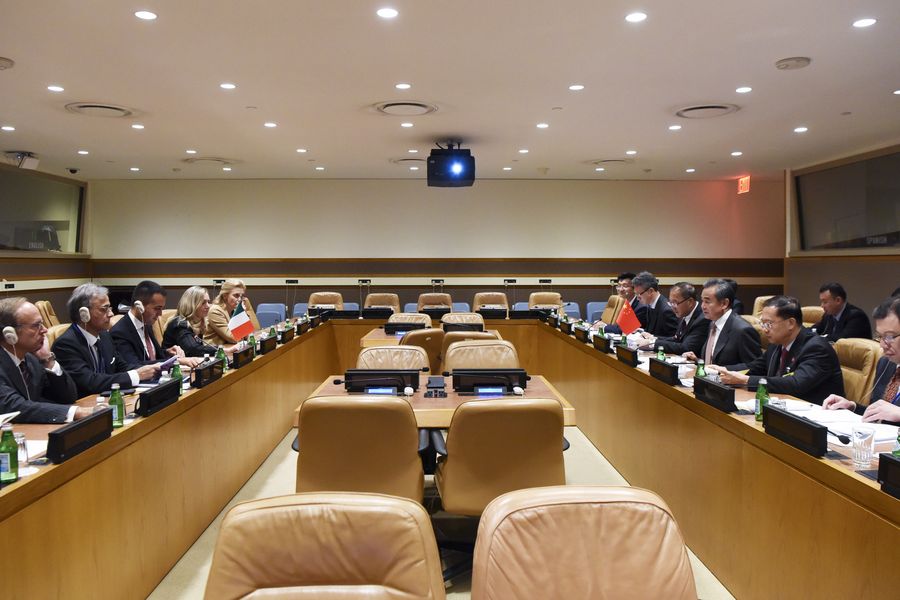UNITED NATIONS, Sept. 26 (Xinhua) -- Chinese State Councilor and Foreign Minister Wang Yi and Italian Foreign Minister Luigi Di Maio agreed on Wednesday to carry out the memorandum of understanding (MoU) on jointly advancing the construction of the Belt and Road.