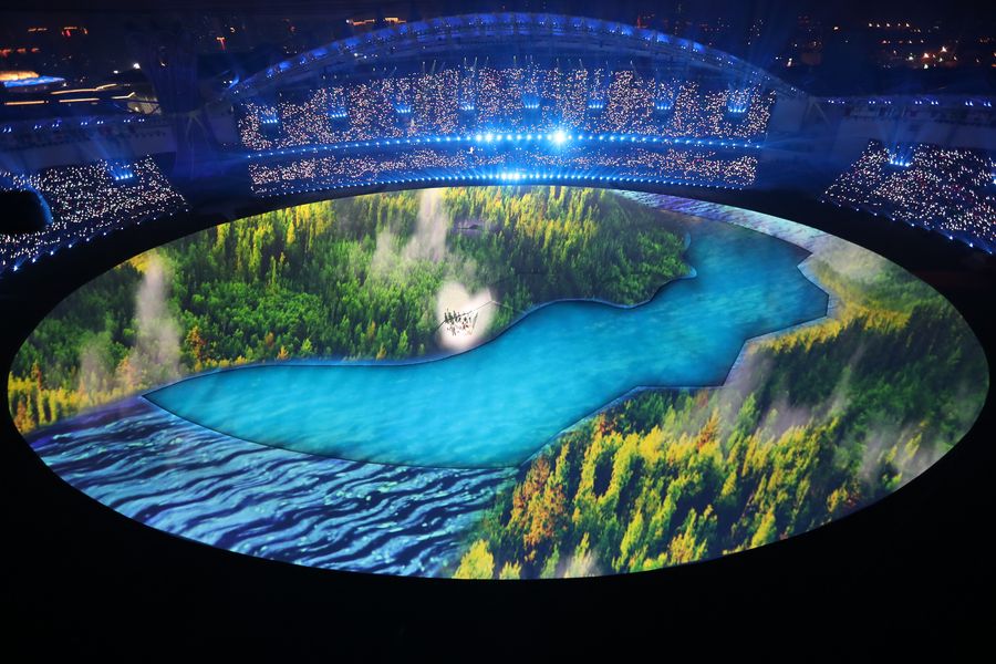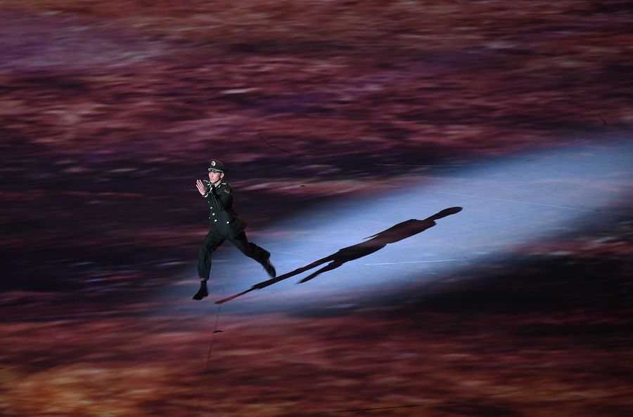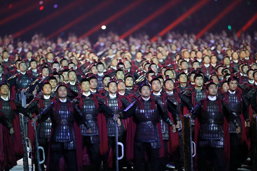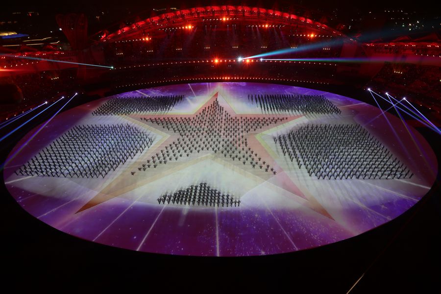 Photo taken on Oct. 18, 2019 shows the art performance during the opening ceremony of the 7th CISM Military World Games in Wuhan, capital of central China's Hubei Province. (Xinhua/Liu Xu)