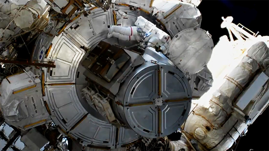 Also, the duo astronauts accomplished a get-ahead task of relocating an additional nickel-hydrogen battery to the external pallet in preparation for next week's spacewalk.