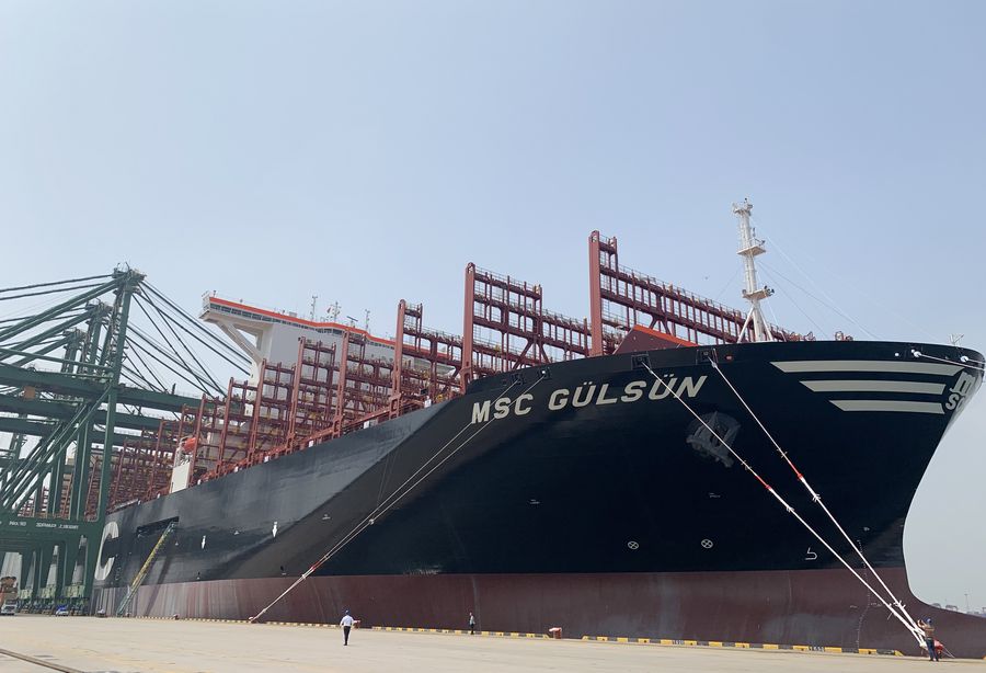 MSC Gulsun docks at the Tianjin Port Pacific International Container Terminal in north China's Tianjin, July 8, 2019. (Xinhua/Mao Zhenhua)