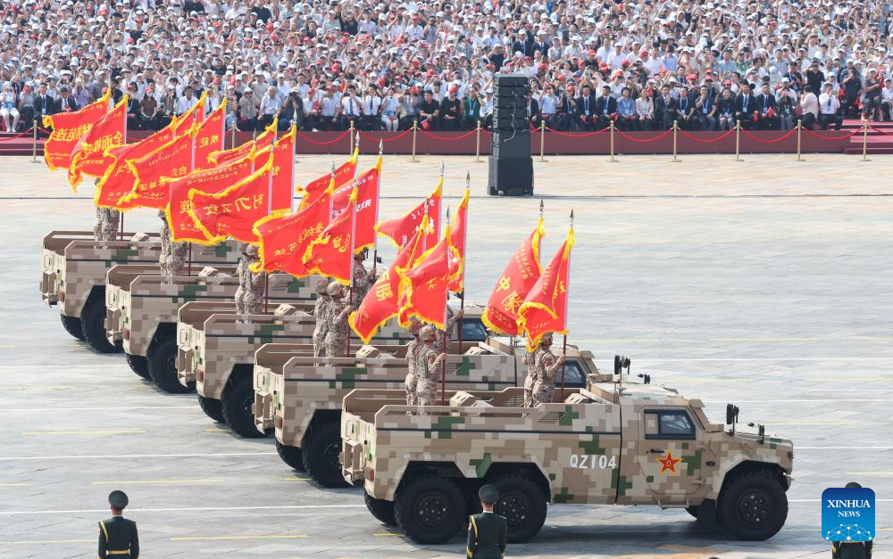 Armament formations attend a parade in Beijing, capital of China, Sept. 3, 2025. China on Wednesday held a grand gathering to commemorate the 80th anniversary of the victory in the Chinese People's War of Resistance against Japanese Aggression and the World Anti-Fascist War. (Xinhua/Liu Xu)