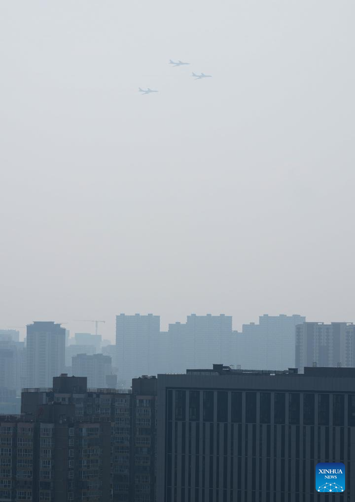 The bomber echelon attends a military parade in Beijing, capital of China, Sept. 3, 2025. China on Wednesday held a grand gathering to commemorate the 80th anniversary of the victory in the Chinese People's War of Resistance against Japanese Aggression and the World Anti-Fascist War. (Xinhua/Sun Fanyue)