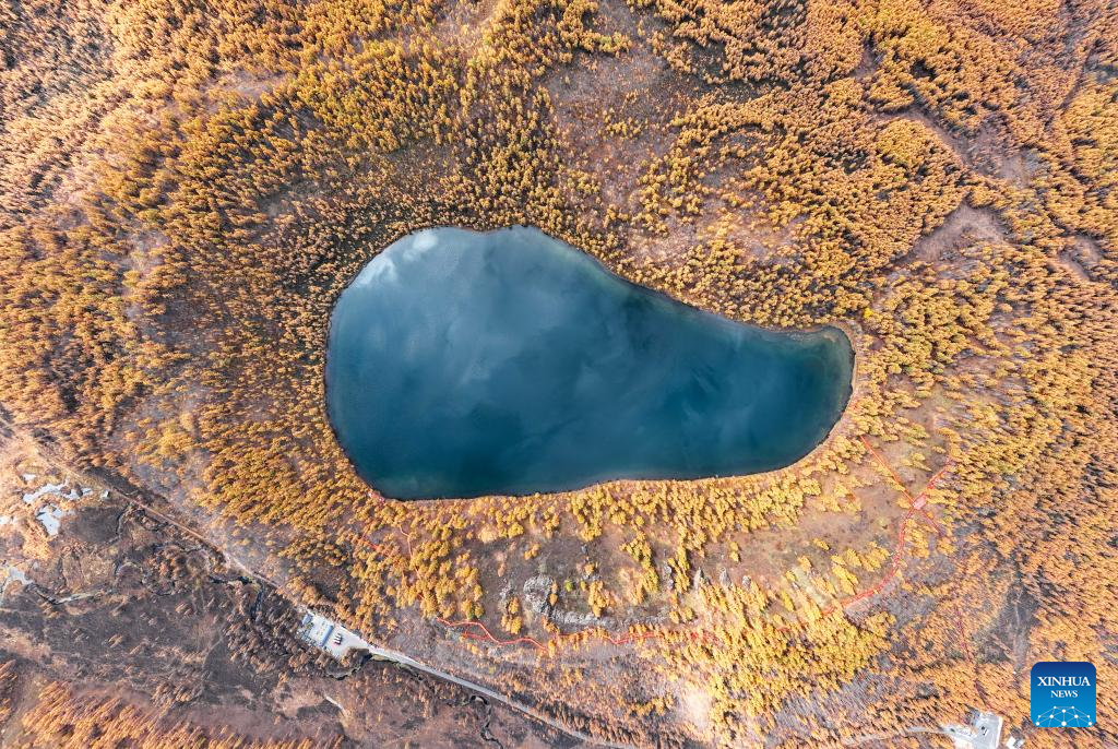 A drone photo taken on Sept. 29, 2025 shows the autumn scenery of the Arxan National Forest Park in Arxan of Hinggan League, north China's Inner Mongolia Autonomous Region. (Xinhua/Bei He)