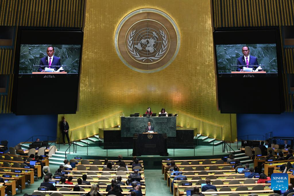 Dionisio Da Costa Babo Soares, Timor-Leste's Permanent Representative to the United Nations, delivers a speech during the General Debate of the 80th session of the United Nations General Assembly (UNGA) at the UN headquarters in New York, on Sept. 29, 2025. (Xinhua/Li Rui)