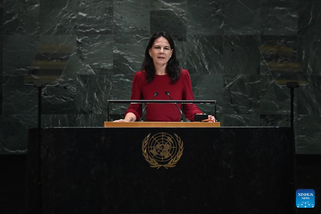 Annalena Baerbock, president of the 80th session of the United Nations General Assembly, delivers closing remarks during the General Debate of the 80th session of the United Nations General Assembly (UNGA) at the UN headquarters in New York, on Sept. 29, 2025. The General Debate of the 80th session of the UN General Assembly concluded on Monday. (Xinhua/Wu Xiaoling)
