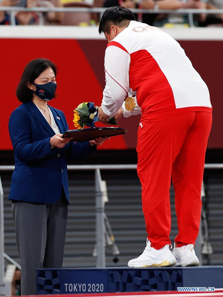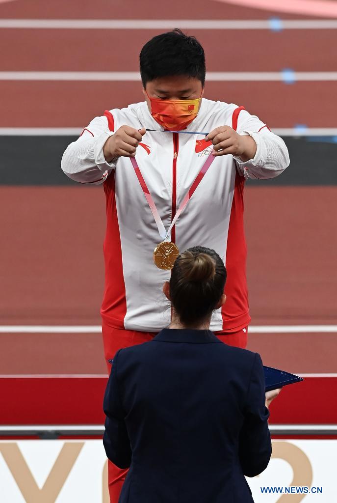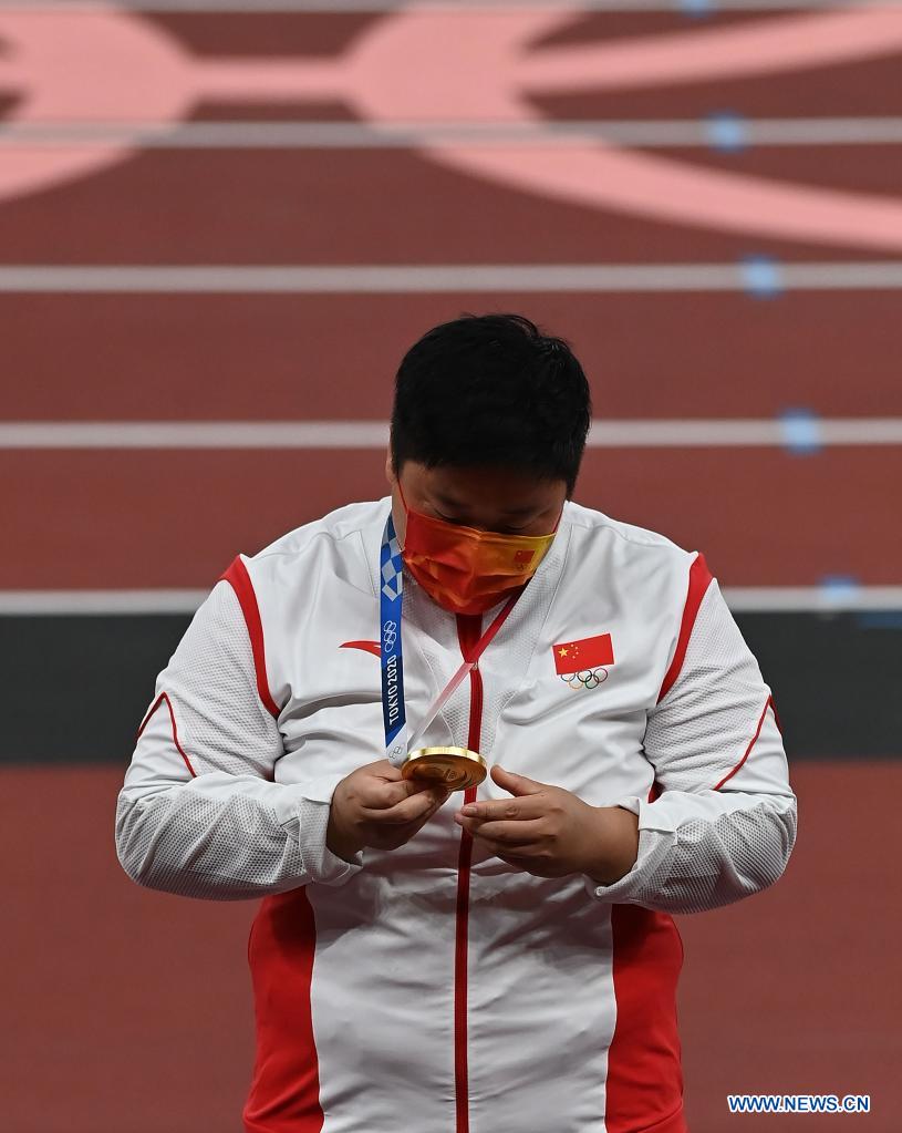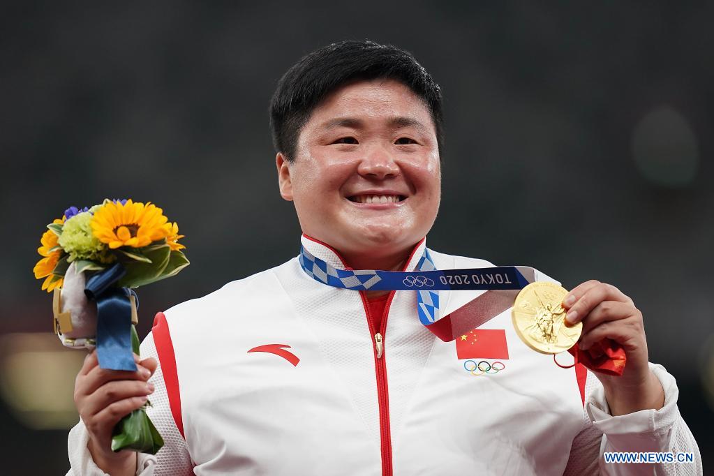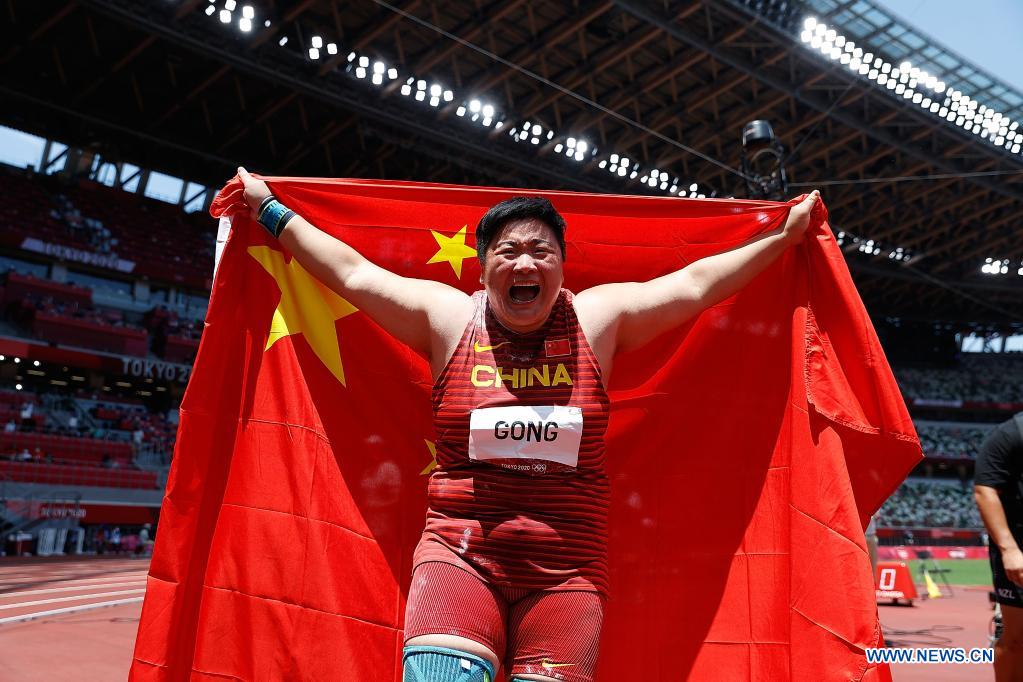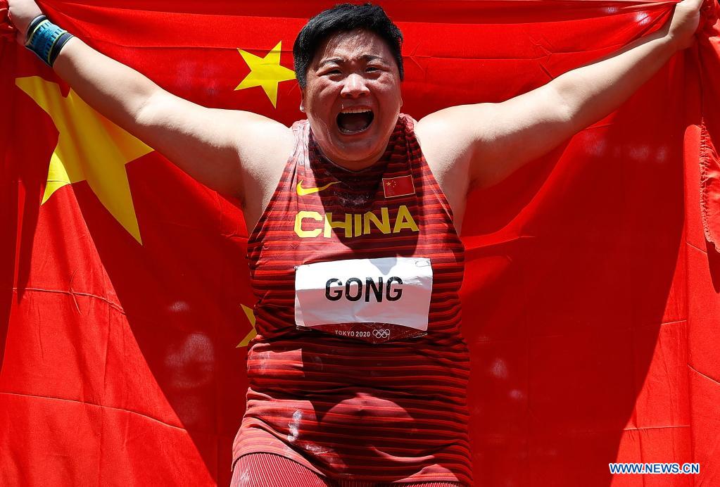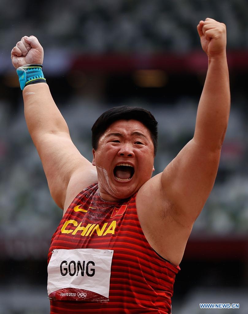 TOKYO, Aug. 1 (Xinhua) -- China's Gong Lijiao dominated in women's shot put at Tokyo Olympics on Sunday, winning her first Olympic gold medal. The victory marked China's first Olympic gold in field events.