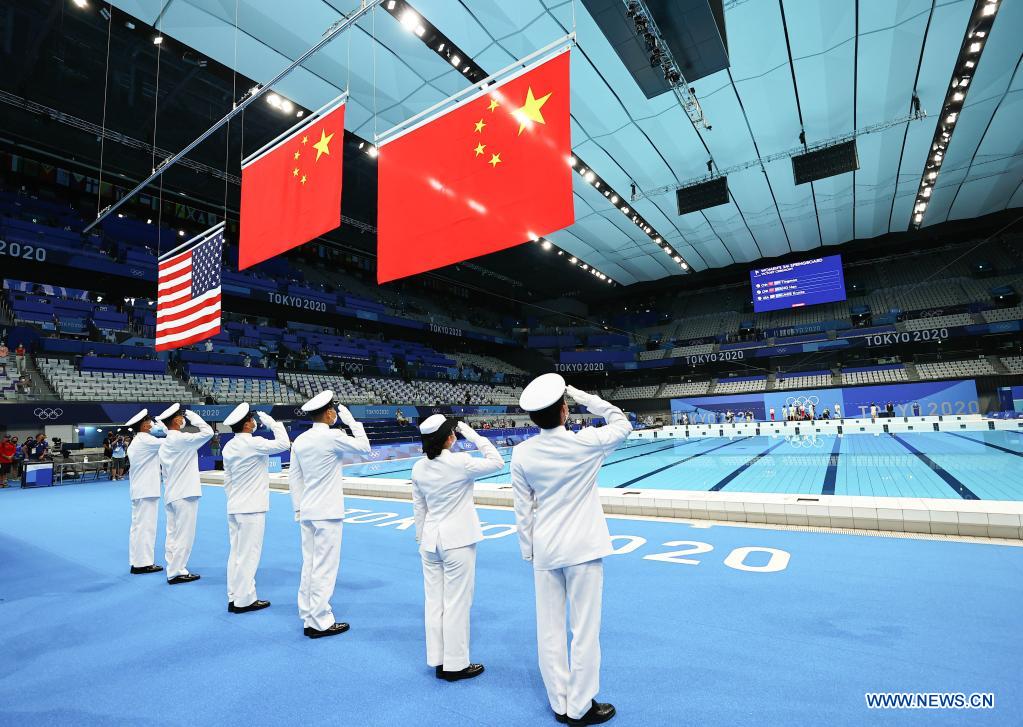 TOKYO, Aug. 1 (Xinhua) -- The United States broke its own world record to win the last swimming gold in Tokyo from the men's 4x100m medley relay as the swimming competitions concluded here on Sunday.