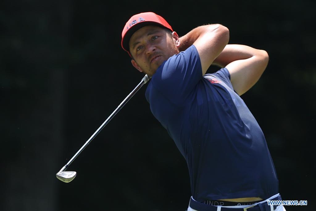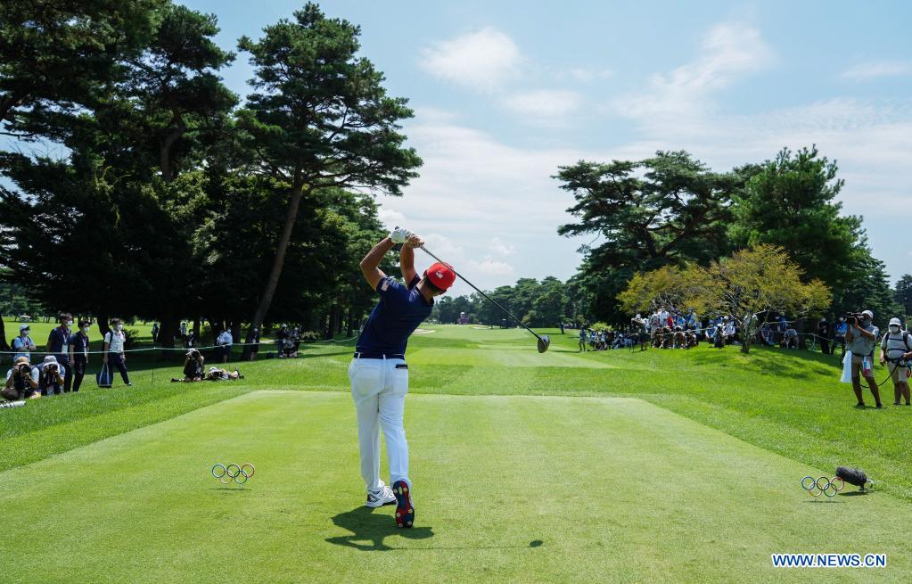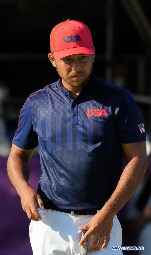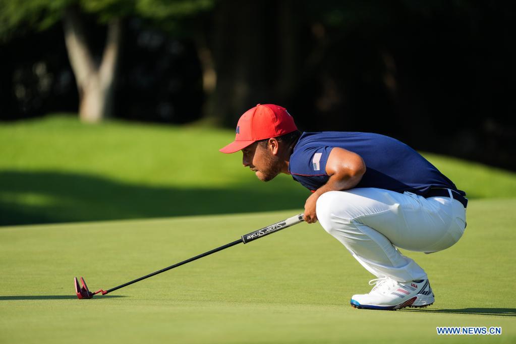 Xander Schauffele of the United States reacts during the men's individual stroke play round 4 golf match at Tokyo 2020 Olympics in Saitama, Japan, Aug. 1, 2021. (Xinhua/Liu Dawei)