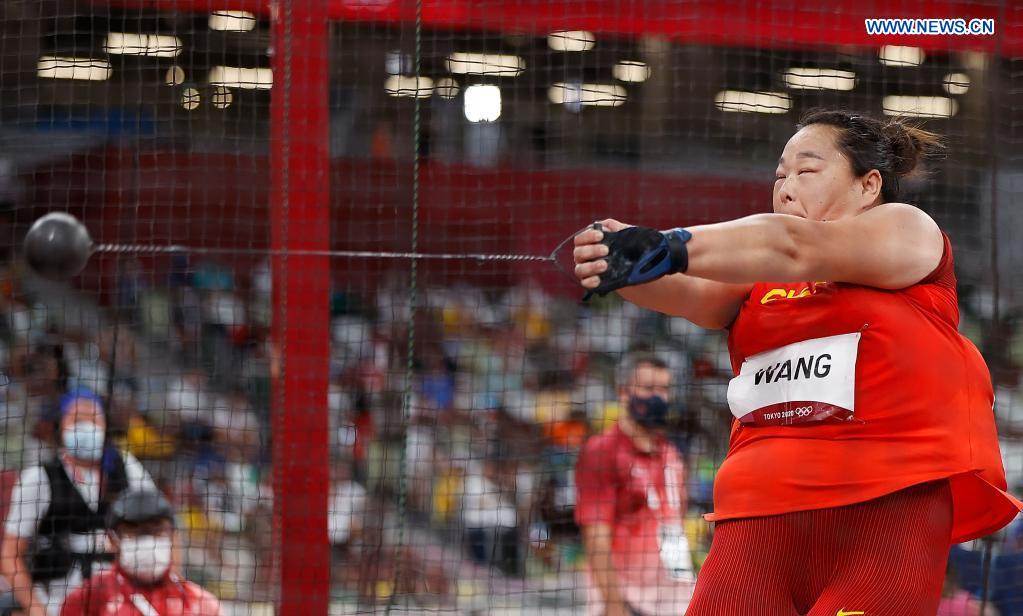Gong Lijiao of China competes during the women's shot put final at Tokyo 2020 Olympic Games, in Tokyo, Japan, Aug 1, 2021. (Xinhua/Wang Lili)