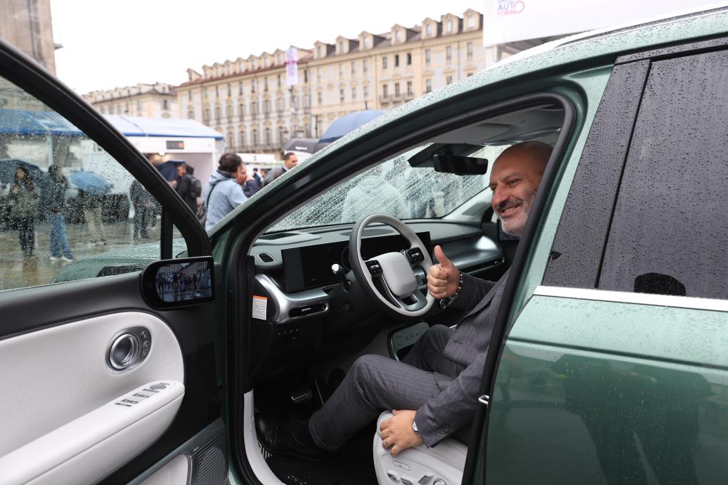 9月26日,在意大利都灵,人们在2025年都灵车展上参观一款展出的菲亚特汽车。
