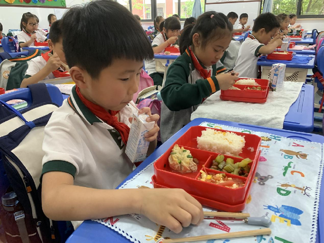 嘉興平湖市崇文小學學生營養午餐中均配有學生奶