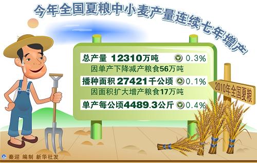今年全國(guó)夏糧中小麥產(chǎn)量連續(xù)七年增產(chǎn)