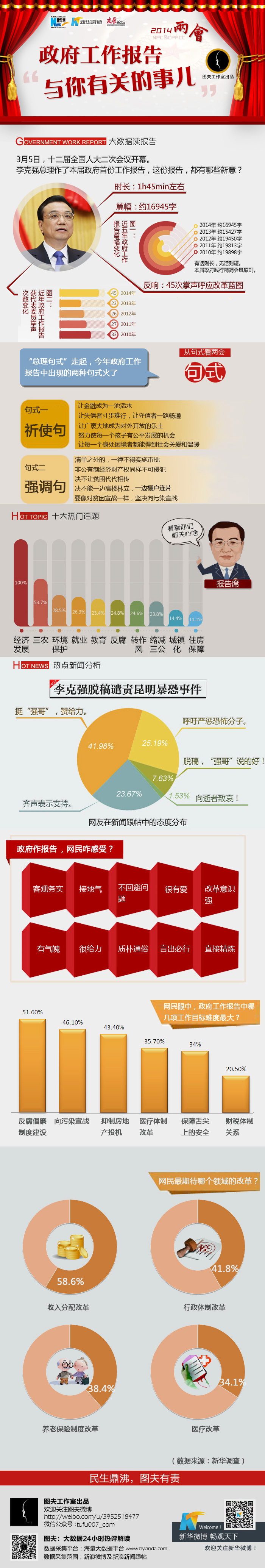 3月5日,李克強總理作了本屆政府首份工作報告,這份報告有哪些新意,網民的感受是怎樣,與我們每一個人又有什么樣的關系?今天我們將通過“大數據解讀”的方式告訴你。