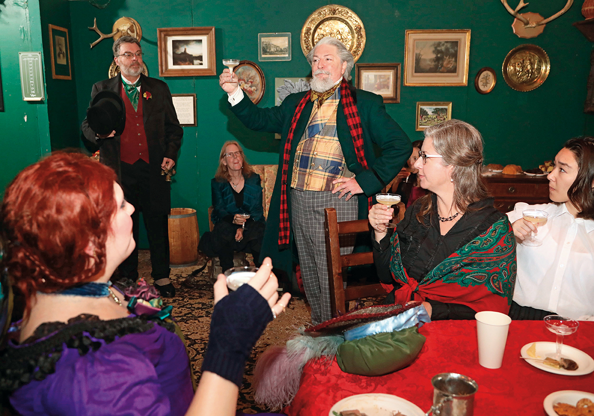在美国旧金山,一名演员(中)在狄更斯圣诞博览会上扮演查尔斯·狄更斯