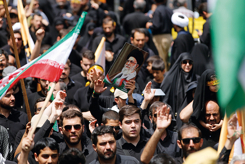 7月5日,人们在伊朗首都德黑兰参加支持伊朗最高领袖哈梅内伊的集会活动