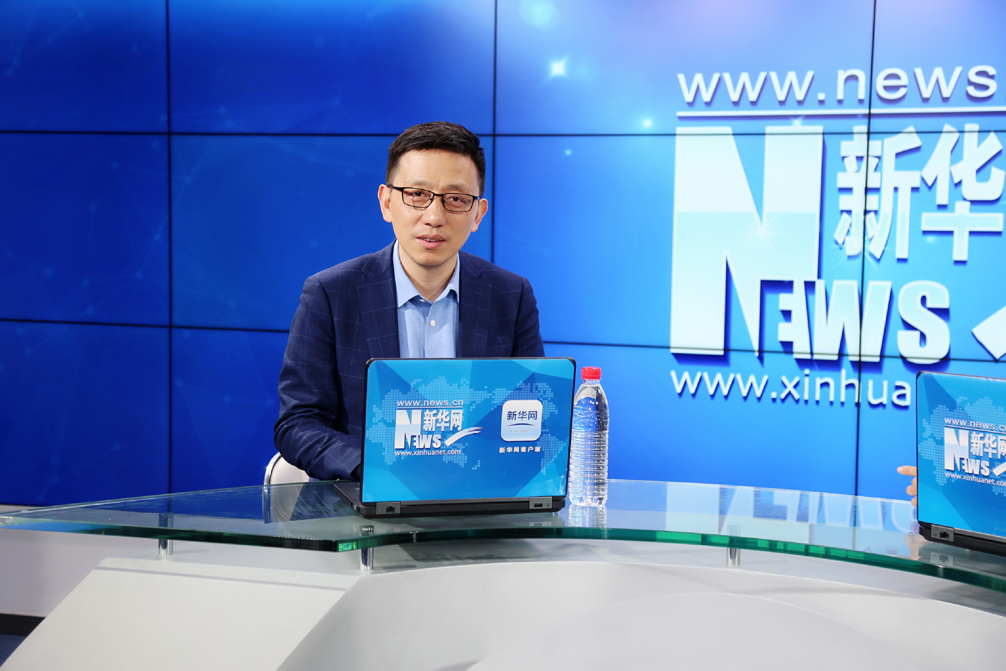 圖為顧均輝做客新華網公益頻道“公益講堂”,就戰(zhàn)略定位落地實操與網友分享。