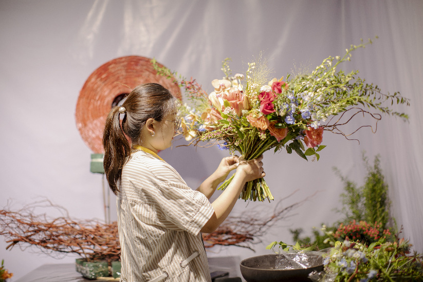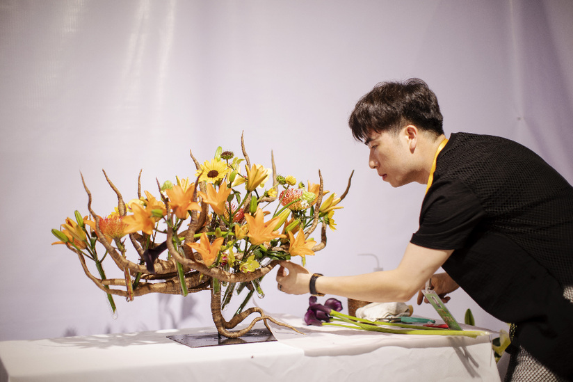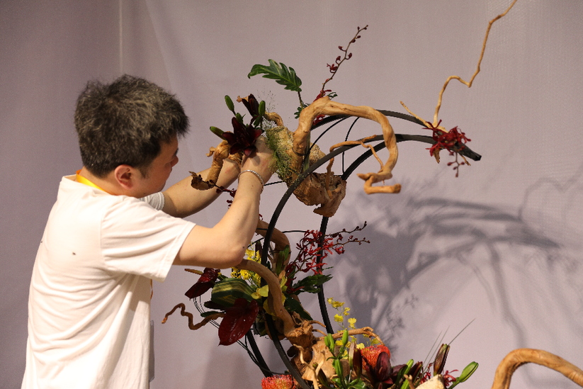 “輕攏慢捻抹復挑,插花也如琵琶語。”記者在現場看到,選手們沉浸在插花藝術創作中,鮮花、枝葉在他們的手中經過一番規整修剪,又如繪畫般慎重落下一抹畫筆,嬌艷綻放的鮮花在新的布局下,逐漸呈現出定格的自然之美、線條之美與意境之美,花藝設計本身的創作過程,就是一場賞心悅目的藝術呈現,人和花交流的過程,也會讓人們更加能夠體會到生命的真實與絢爛。
