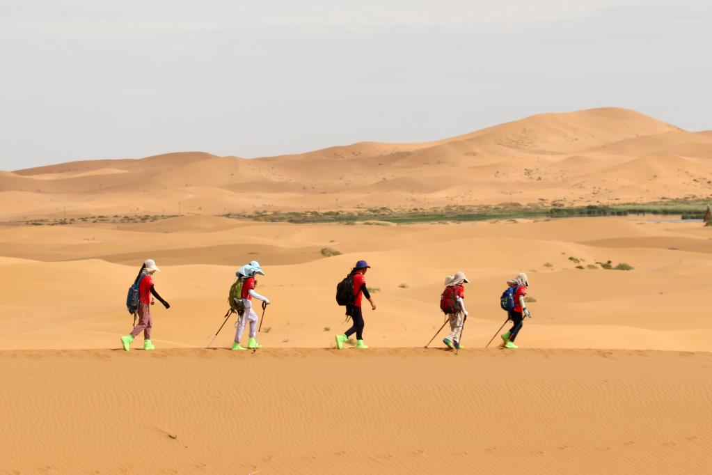 孩子们在内蒙古腾格里沙漠参加“少年徒步中国”53公里徒步。(受访者供图)