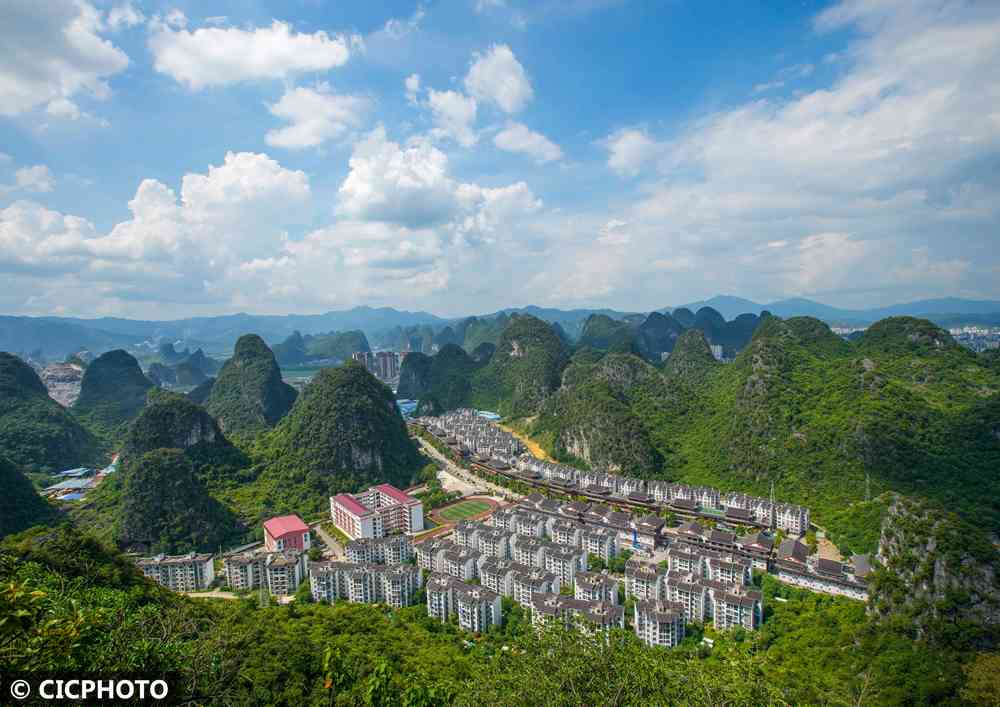 ↑2025年9月18日在广西柳州市融水苗族自治县易地扶贫搬迁安置小区苗家小镇拍摄的景色。CICPHOTO/龙涛 摄