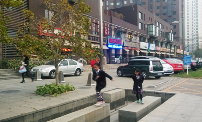 小區共有三個大門,只有一個大門設有門禁,其他兩個都可以隨意進入,門口沒有保安,小區內也沒有保安巡邏。小區內的道路車輛可以隨意行走,可見沒有進行人車分流,并且路上沒有緩沖帶。小區的外圍護欄十分矮,基本上與汽車同等高度,也沒有24小時監控設施。