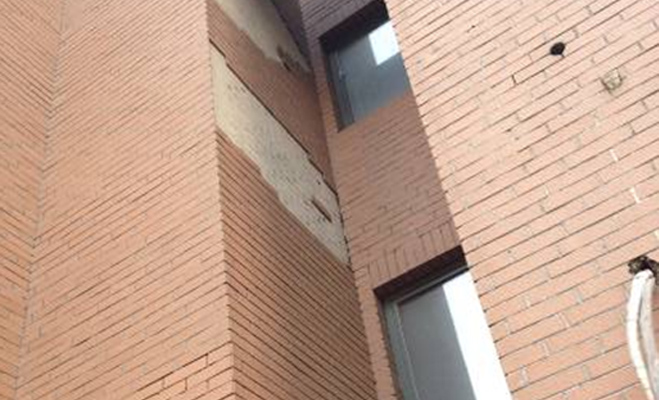 另據觀察,小區部分樓體的外立面磚墻有脫落現象。據業主介紹,這種情況時有發生,他們也向物業反映過,但還未有明顯改善。小區花園內設有公告欄,一些即時信息都會張貼在此。