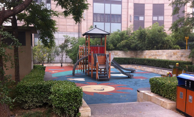 小區(qū)內(nèi)部綠化較好,既有涼亭假山也有大片水域其中。另外小區(qū)設(shè)有專門(mén)的兒童游樂(lè)設(shè)施,配備有比較齊全的健身器材。