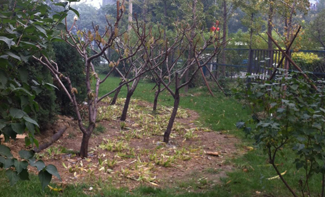 另外記者還發(fā)現(xiàn)在小區(qū)內(nèi)有多個(gè)區(qū)域的綠植出現(xiàn)了枯死,在簇簇濃綠之中格外扎眼。據(jù)社區(qū)內(nèi)的一位業(yè)主介紹,這種情況每年都會(huì)出現(xiàn)(該項(xiàng)目入駐時(shí)間為2008年)。就在調(diào)查期間,一棟樓的門(mén)口位置圍著幾名身著物業(yè)人員。原來(lái),這里的地板磚出現(xiàn)了斷裂、拱起,需要對(duì)其進(jìn)行切割、整修。記者還在花壇兩側(cè)、雕像周?chē)l(fā)現(xiàn)了裂縫。