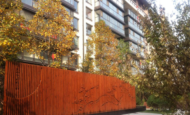 記者進入萬科五礦如園南區,首先被吸引的是入堂口的“半潭秋水”。庭院中一潭水池,而水池旁還設有一臺古琴,頗有幾分韻味。再往小區內進入,還有一片小竹林。據了解,如園共有十六個院落,分別以春夏秋冬、琴棋書畫、風華雪月、梅蘭竹菊中的十六個字作為主題。