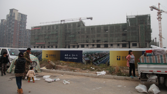 記者實(shí)探發(fā)現(xiàn),金隅瀾灣的樓盤已經(jīng)接近封頂,整個建筑的輪廓已經(jīng)能夠分辨,但外立面部分還沒有動工,無法看出整體效果,小區(qū)內(nèi)的綠化部分也尚未開始。