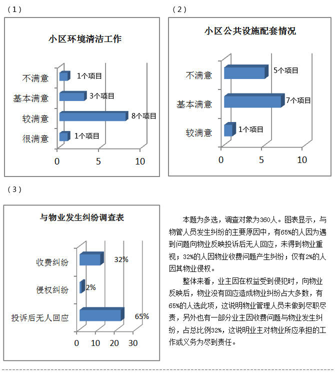 1、調查問卷的設計。本次調查問卷由新華房產新聞組合作設計調查試卷,采用的是結構型問卷形式,從業主的4個方面共設計了20個題目,保證了問卷設計的科學性與全面性。