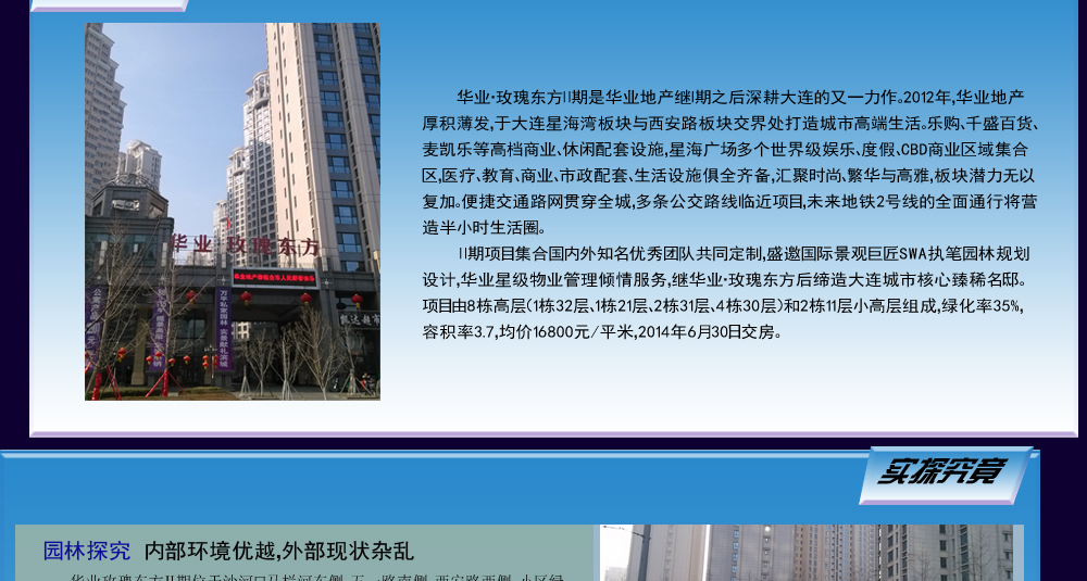 ????說起大連的幾大商圈,西安路與和平廣場不得不提,而位于這兩個(gè)商圈中間位置的華業(yè)玫瑰東方Ⅱ期,成為眾多購房者關(guān)注的焦點(diǎn),本期的神秘訪客我們就實(shí)地探訪華業(yè)玫瑰東方Ⅱ期,看一看它的優(yōu)勢與不足。