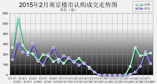 2015年的春節(jié)長假,盡管開發(fā)商熱情不減,又是發(fā)紅包,又是搞特價(jià),但購房者卻并不買單。截止到2月24日晚間9點(diǎn)30分的數(shù)據(jù),2月18日-2月24日,南京樓市共計(jì)認(rèn)購商品住宅83套,成交7套。 與往年一樣,從除夕開始到大年初五,網(wǎng)上房地產(chǎn)數(shù)據(jù)始終掛零,直至大年初六(2月24日)才開始有數(shù)據(jù)陸續(xù)上傳。 …[詳細(xì)]