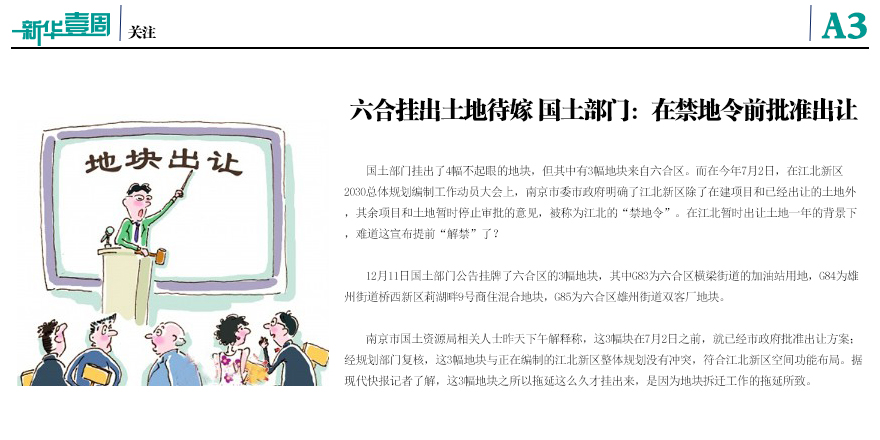 六合掛出地塊在禁地令前批準出讓