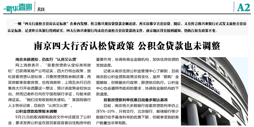 南京四大行否認松貸政策