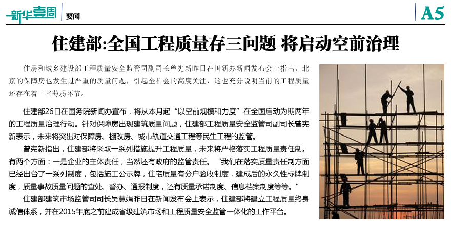 住建部:全國工程質量存三問題
