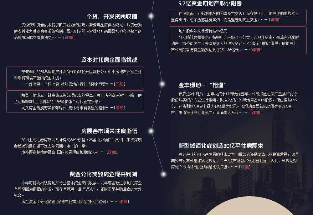 | 對(duì)于2014年整體市場(chǎng)環(huán)境,多數(shù)龍頭房企表示“不悲觀,但要謹(jǐn)慎很多”。尤其是三四線(xiàn)供給過(guò)大城市可能出現(xiàn)一定去化風(fēng)險(xiǎn)和降價(jià)風(fēng)險(xiǎn),幾乎成為房企共識(shí)。在此情況下,因龍頭房企幾乎都是走全國(guó)布局戰(zhàn)略,其“去庫(kù)存、快周轉(zhuǎn)”的思路就變得十分明確。 |