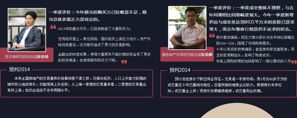 | 龍頭房企年報(bào)普遍呈現(xiàn)三大特征:2013年業(yè)績(jī)大幅增長(zhǎng),2014年銷(xiāo)售目標(biāo)則相對(duì)謹(jǐn)慎;毛利率集體下降,但凈資產(chǎn)收益率等指標(biāo)穩(wěn)定增長(zhǎng);去存貨、快周轉(zhuǎn),成為應(yīng)對(duì)行業(yè)調(diào)整期的統(tǒng)一動(dòng)作。在有效控制銷(xiāo)售成本、融資成本的情況下,也不排除通過(guò)價(jià)格策略的調(diào)整,搶收2014。 |