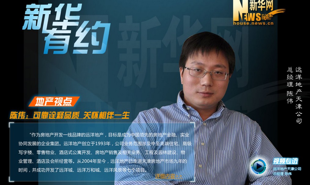 作為房地產開發一線品牌的遠洋地產,目標是成為中國領先的房地產金融、實業協同發展的企業集團。遠2004年至今,遠洋地產已走進天津房地產市場九年的,并成功開發了遠洋城、遠洋萬和城、遠洋風景等七個項目。新華網新華房產榮幸的邀請到遠洋地產天津公司總經理陳偉,共同分享遠洋地產在天津的成長之路。