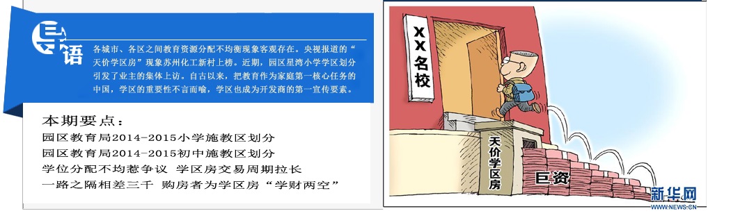 2014年,園區的學區劃分再次引起軒然大波。星灣小學、園區二實小學區的劃分引發了業主上訪。學區已經成為購房看中的第一要素之一,一路之隔,不同學區差價三千。