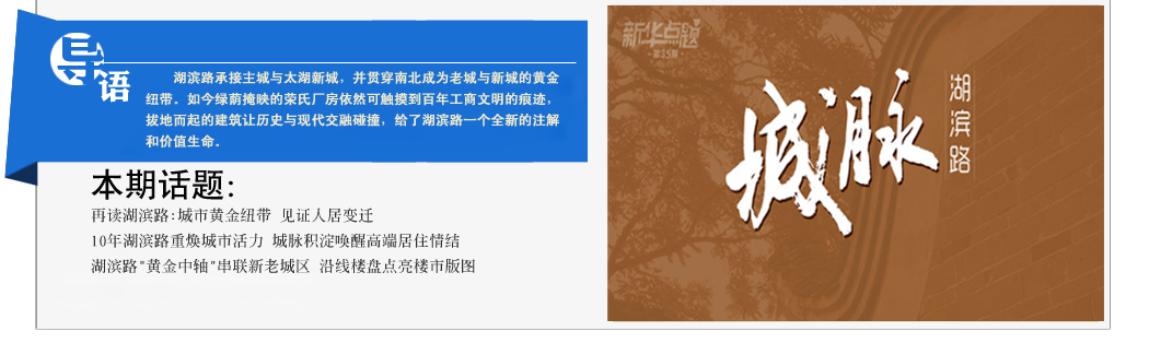 城市的發展幾經嬗變,但是萬變不離其宗,依然有幾條路發揮著黃金紐帶的作用。湖濱路,無錫人無人不知無人不曉,因榮氏家族而聞名。經過城市發展,昔日的工商業源頭之一,已經蛻變為如今的高端住宅區。
