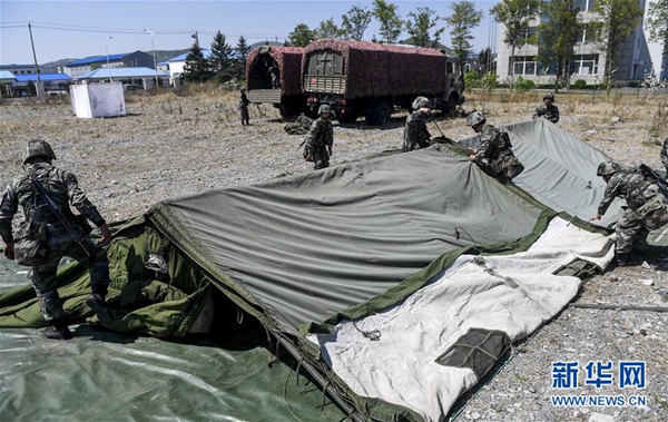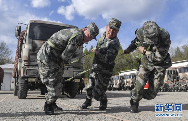 5月7日,沈陽聯(lián)勤保障中心某汽車運輸旅一營戰(zhàn)士進(jìn)行戰(zhàn)備拉動演練。新華社記者 許暢 攝