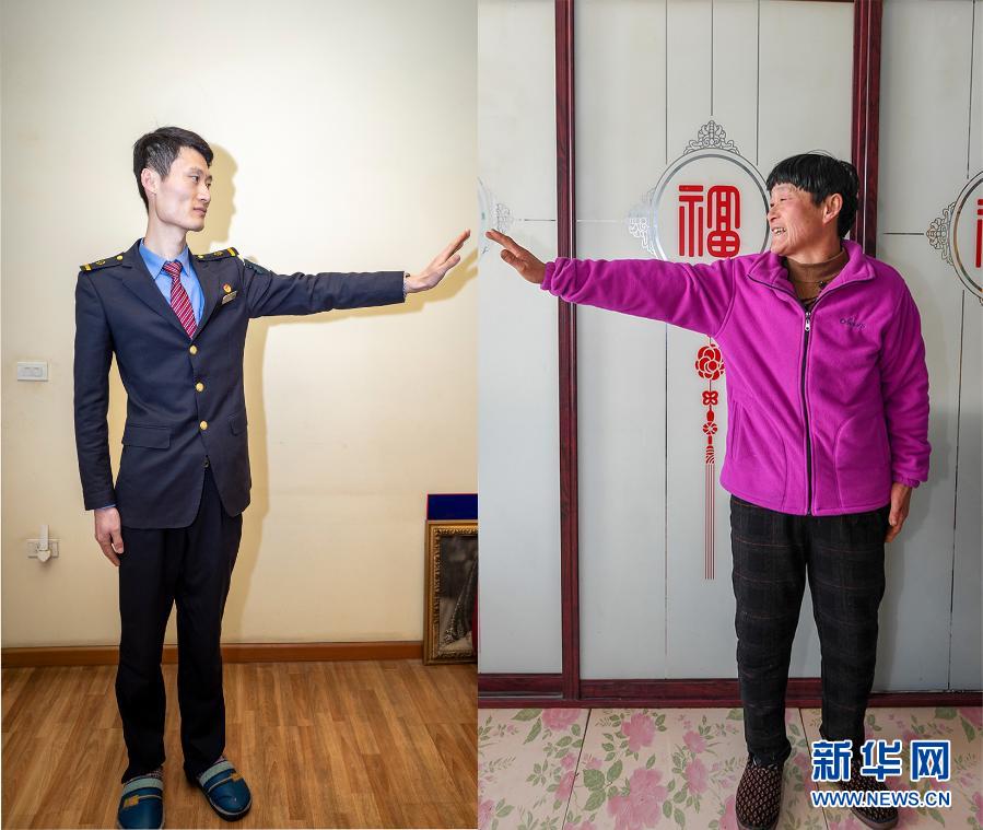 拼版照片:左圖為2月10日,付寶印在重慶市渝中區的家中(新華社記者 黃偉 攝);右圖為2月9日,付寶印的母親鐘士輝在吉林省長春市農安縣楊樹林鄉牛尾巴山村家中(新華社記者 張楠 攝)。新華社發