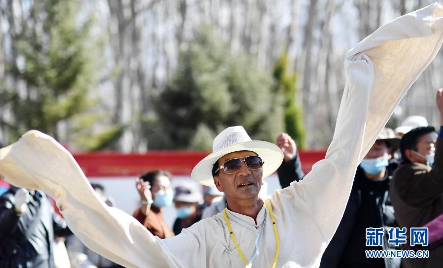 3月8日,人們在拉薩龍王潭公園跳舞。新華社記者 覺果 攝