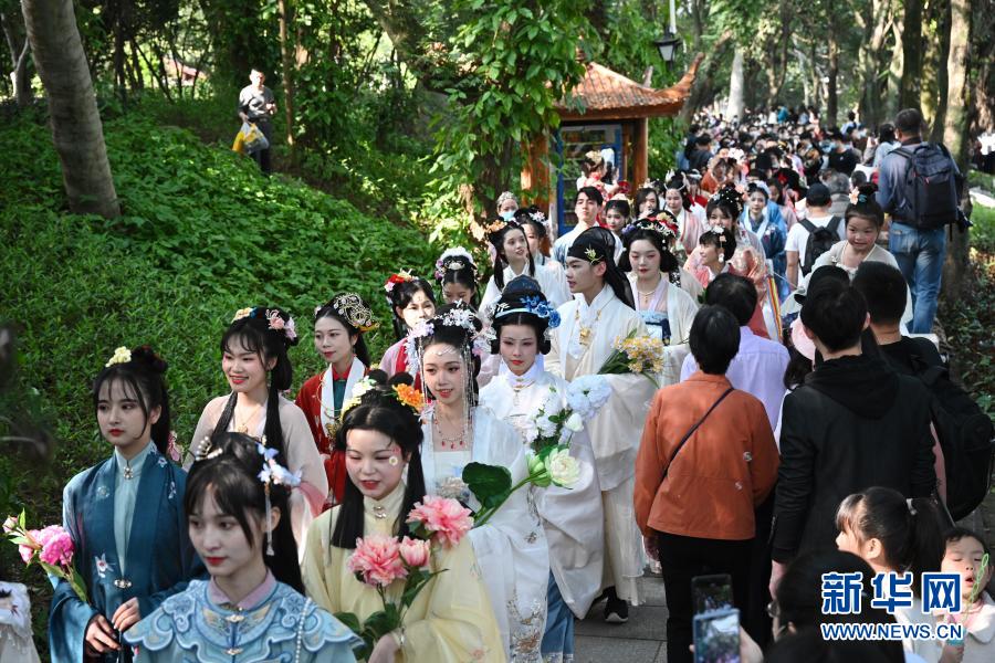 3月13日至14日,第二屆福州西湖花朝節系列活動在福州西湖公園舉行,流觴詩會、漢服雅集、百花祭典、簪花游園等10場活動再現花朝節傳統民俗文化之美。
