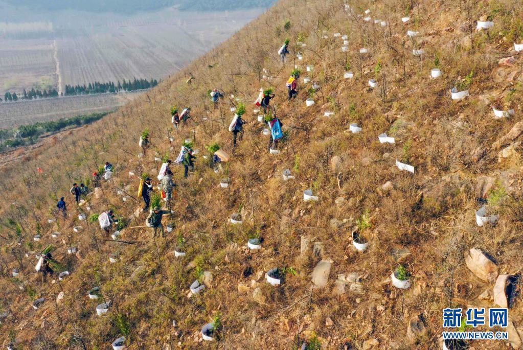 仲春時節,河北省遵化市提前開始今年的荒山造林,造林隊員們忙著運送樹苗、栽樹、澆水。遵化市今年計劃完成荒山造林5萬多畝。