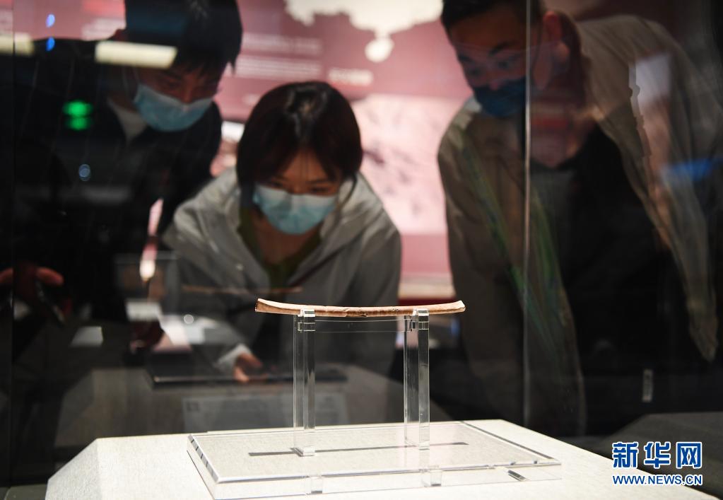 4月5日,參觀者在觀看河南博物院展出的骨笛。