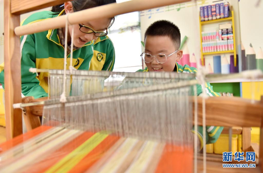 4月7日,威縣第四小學學生在體驗老粗布紡織技藝。近年來,河北省邢臺市威縣積極開展“非遺傳承進校園”活動,將當地特色非遺項目引入學校課堂,讓學生近距離感受民間傳統技藝的魅力,促進非遺文化的保護和傳承。新華社記者 朱旭東 攝